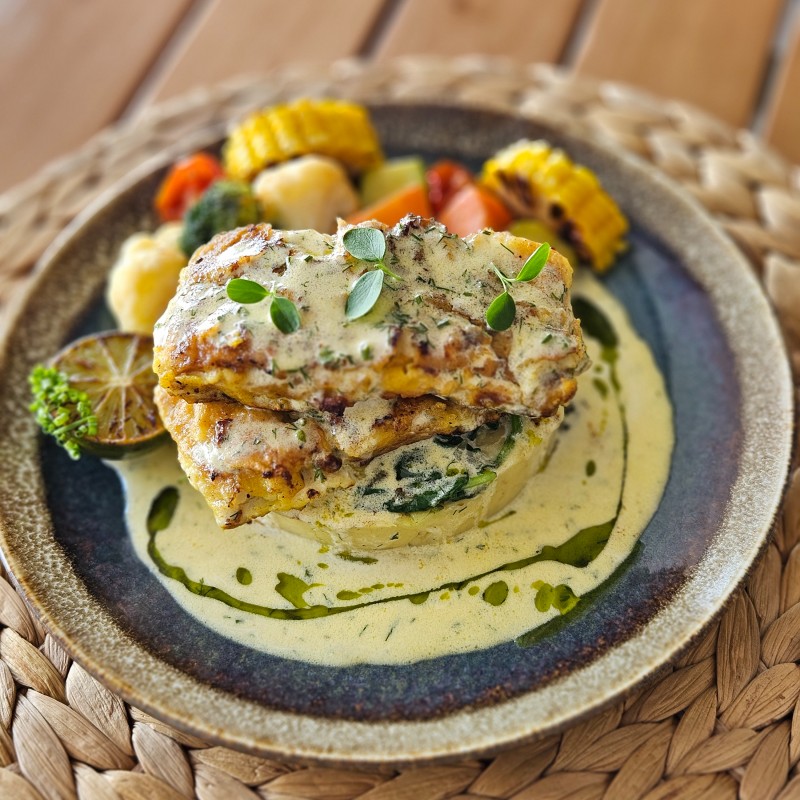استاكوزا محشية بخلطة من الفطر و بعض الخضار مغطى بالجبنه